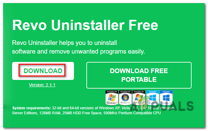 - Open your default browser and access this link (here) to download and install the latest free version of Revo Uninstaller. Once you get there, click the Download button to initiate the process.
