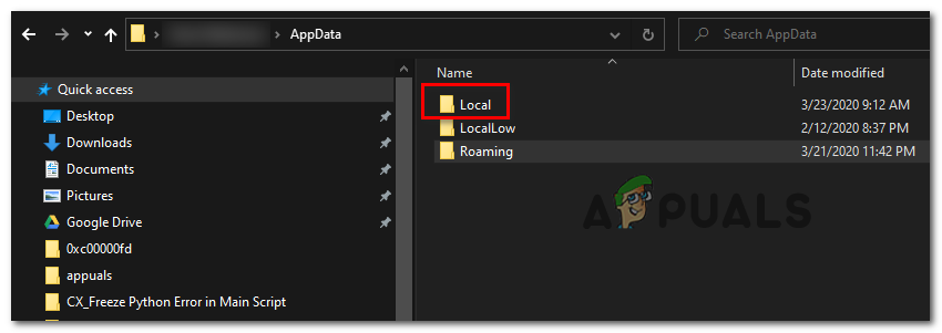 Typing in %AppData% and pressing Enter9 - Once you’re inside the AppData folder, back-track by clicking on the back arrow and click on Local.