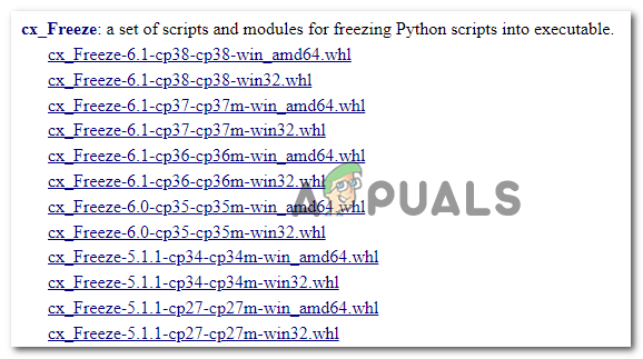 Uninstalling the CX_freeze package - Next, open your default browser and use it to access this link (here). Once inside, you should see a list of Unofficial Windows Binaries for Python Extension Packages.