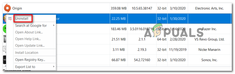 In the vast majority of cases where this problem is reported, it ends up being caused by a poorly written Phyton application (most likely Raptr or PlayTV). If this scenario is applicable, you should be able to fix the issue by uninstalling the problematic app – You can either do it conventionally (via Programs and Features) or by using a powerful 3rd party uninstaller.