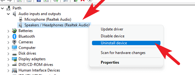 - Right-click on the audio device you want to remove and select Uninstall device.