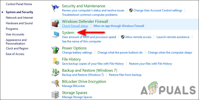 Accessing the System and Security tab - Now open System and choose System Protection.