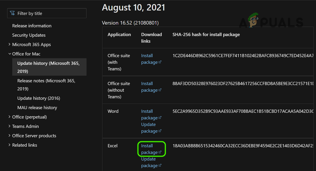 Download the Install-Package of Microsoft Excel for Mac - Once downloaded, install the package and hopefully, the Excel issue is resolved.