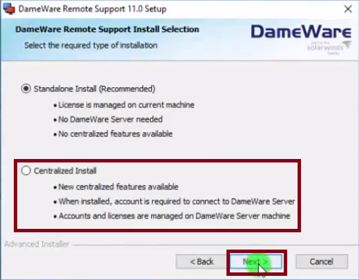 Once you have set up all the components on the specific servers, you will still have to install the Dameware client on your computer so that you can be able to send the connection requests to remote computers. The process is pretty straightforward. Just run the Dameware Remote Support installation file and now instead of choosing Standalone, select the Centralized Install option. You can refer to this guide for more information.
