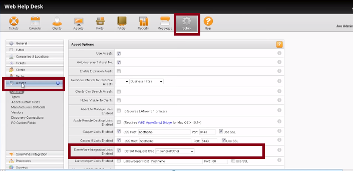 Integration with the SolarWinds Web Help Desk