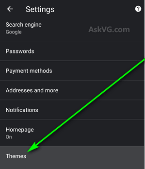 Tap on Themes - Tap on Dark to switch to the Dark Theme. The System Default option makes it so Chrome only enables the Dark Theme when your device is running low on battery and Power Saver mode kicks in or if the system-wide color theme for your device is changed to Dark.