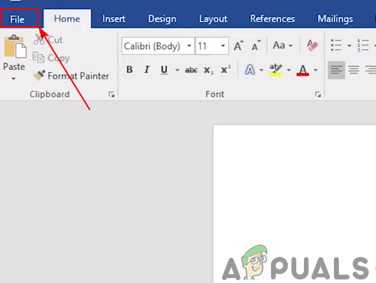 - Open one of the Microsoft Office applications by clicking the shortcut or searching in the Windows search feature. Click on the File menu at the top.