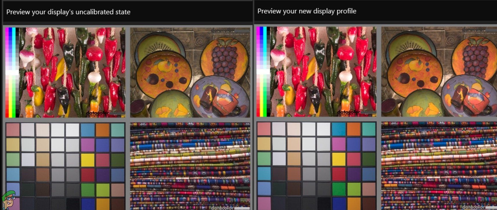 Once you have completed the calibration process, which takes only a couple of minutes, the SpyderUtility shows you a couple of pictures which you can use to compare how the monitor colours look before and after. After running this, you essentially set up a new colouring profile for your monitor that will match the standards that it should. Depending on how well your monitor was calibrated before and what the colour and brightness settings were, the difference in the before and after photos can vary. However, it is there and it is quite noticeable.