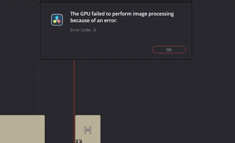 DaVinci Resolve may stop with “The GPU failed to perform image processing because of an error.” (Error Code 5). This can break playback, stop effects from rendering, or fail exports mid-way.