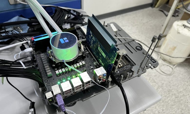 Running with timings of 50-62-62-127-127, SafeDisk achieved a memory overclock of DDR5-10600. While you’d expect some serious cooling tech, the entire setup featured a simple liquid cooler, nothing fancy.