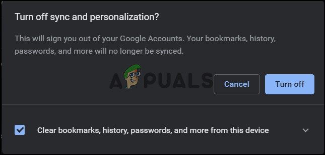 Turn off sync - Select Clear Bookmarks, history, password, and more from this device.