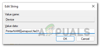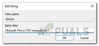 Changing Default Printer - There are three parts to the value data, each separated by a comma, and you will be changing only the first part, which is the name of your printer.