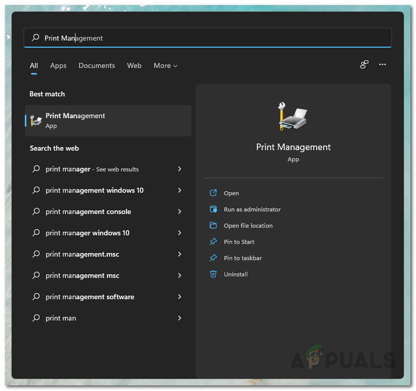 - First of all, open the Start Menu and search for Print Management. Open it.