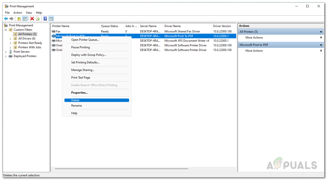 As it turns out, another way to get rid of the ghost printer is by using the Print Management utility, which allows you to manage and handle all the printers connected to your computer, including any print servers and more. To use the Print Management utility, follow the instructions provided below: