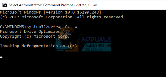 You can easily pass the command lines using command prompt when launching the disk defragmenter manually. For example, we can execute the “-w” command on local disk C by executing the following command: