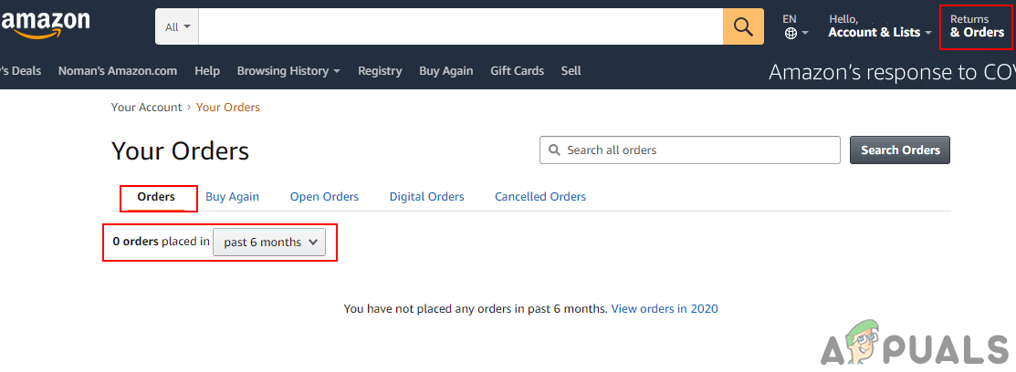 Sign in to Amazon account - Make sure you check your orders before closing the account. Click on the Order button at the top right. If there are any pending orders, you can cancel them.