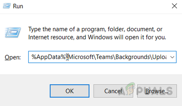 Opening Run Dialog Box - Copy-paste the following location address in the search bar and press Enter. This will take you to MS Teams Background Uploads hidden folder.
