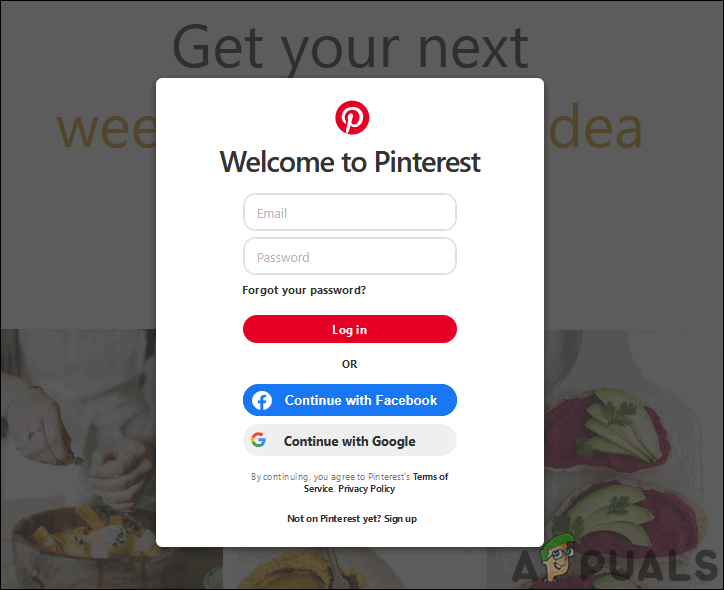 - Open your browser and go to the Pinterest website. Log in to your account by providing the Email and Password for your account.