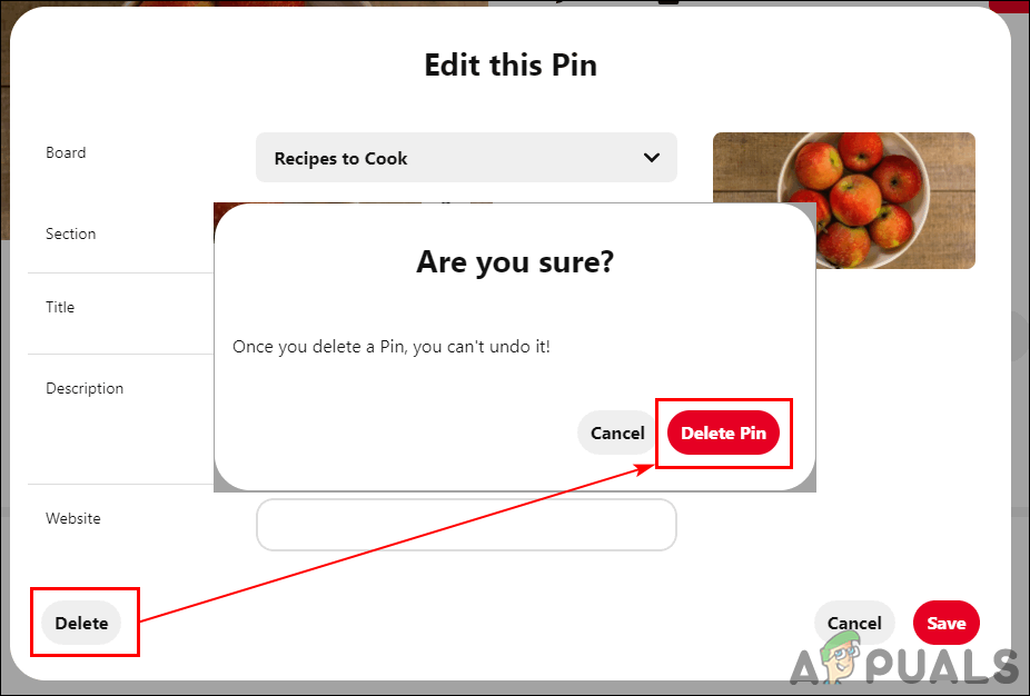 Deleting a Pin on Pinterest