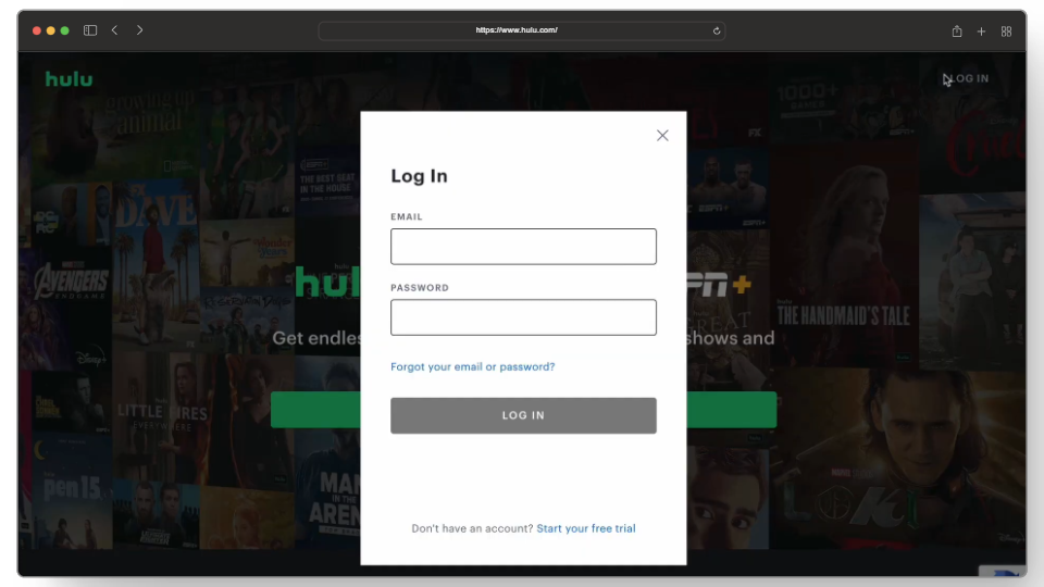 - Head over to the official Hulu website on your laptop or mobile device and log in.