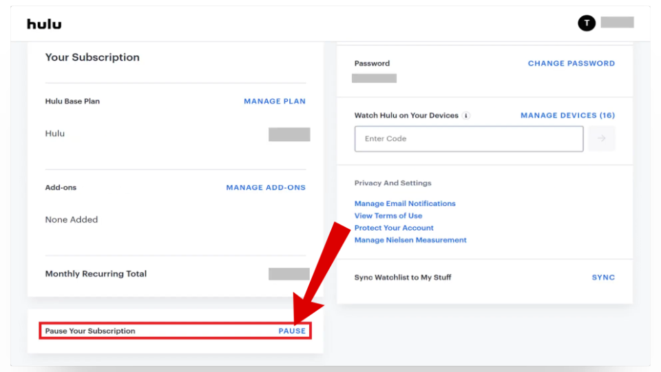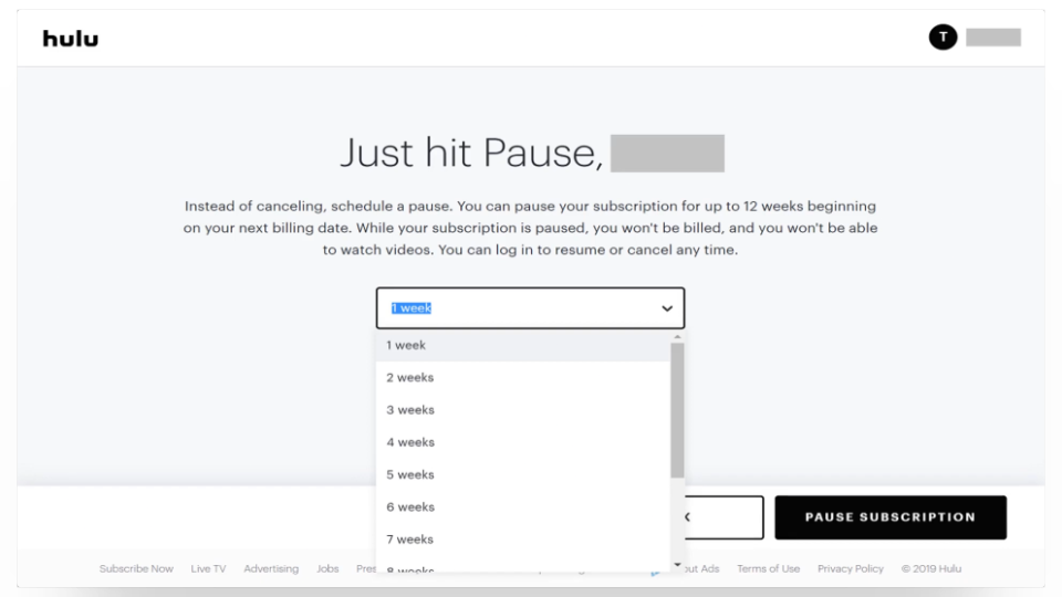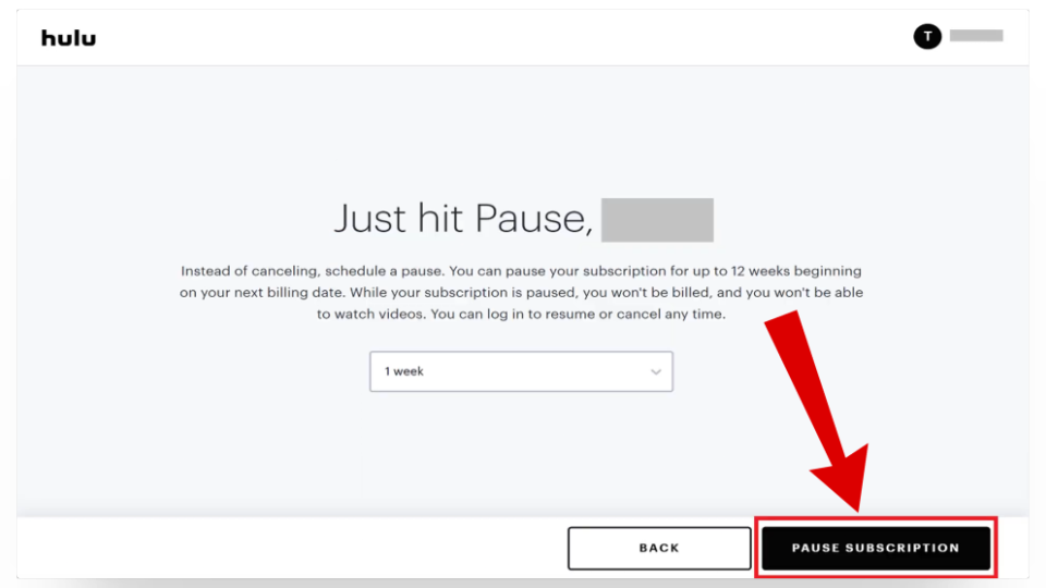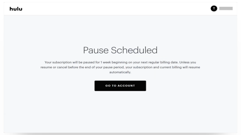 Press the pause subscription button - That’s it! Your Hulu account should now be on hold.
