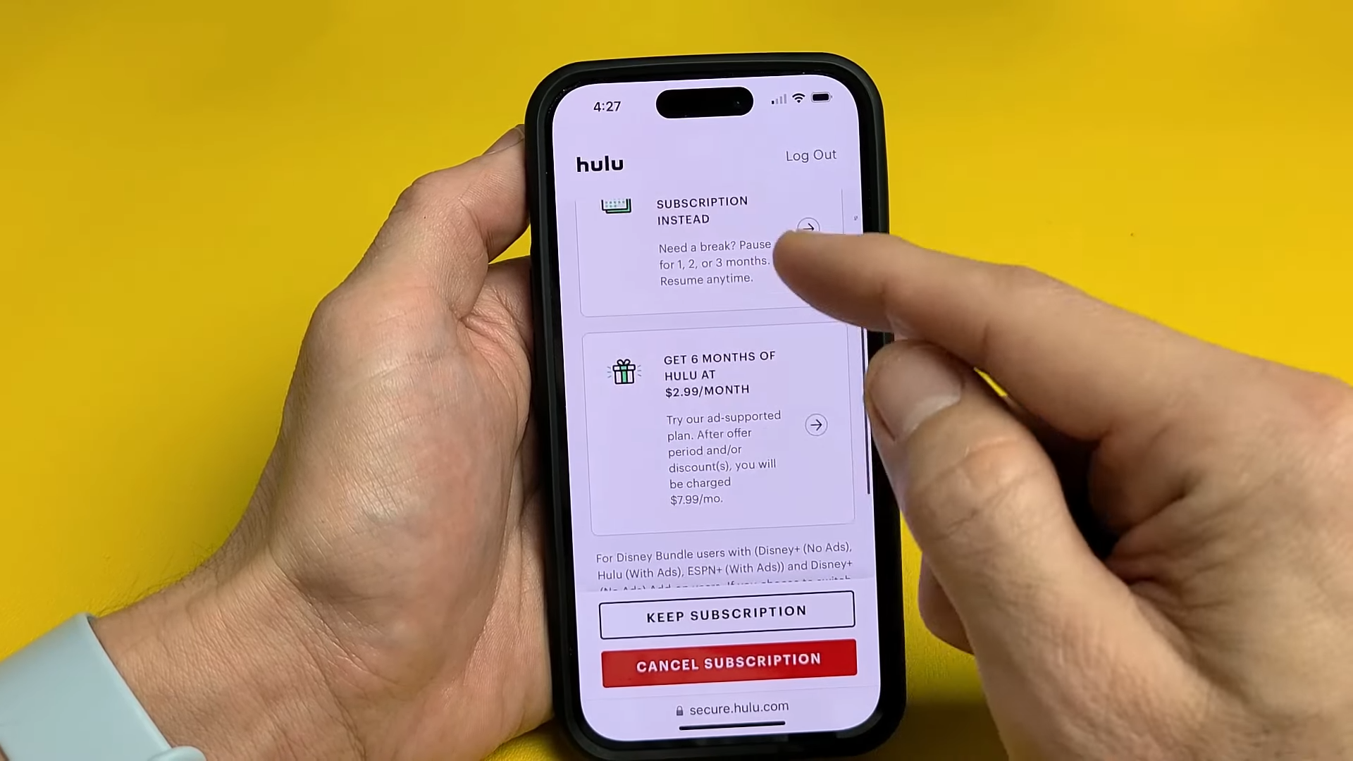 Hulu special offers - Here, press the “Cancel Subscription” button and you are all good to go.