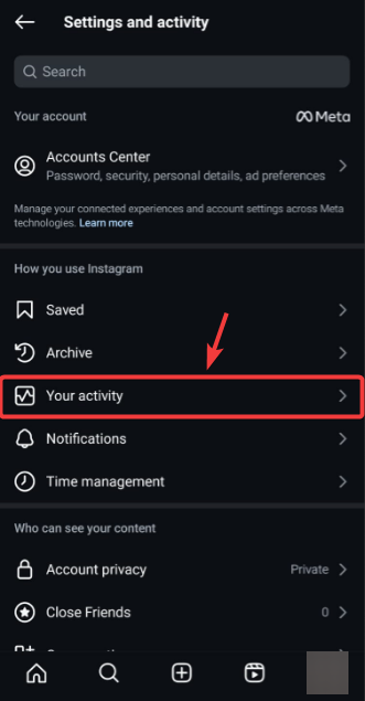 - Tap the option that says Your Activity.