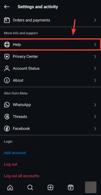 - Scroll down to the bottom and tap Help.