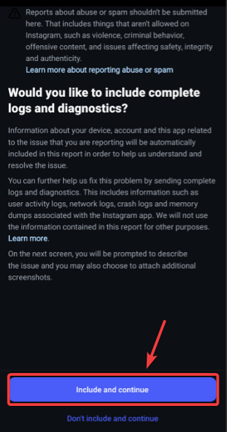 - Finally, tap Include and Continue, then paste or type the following paragraph.