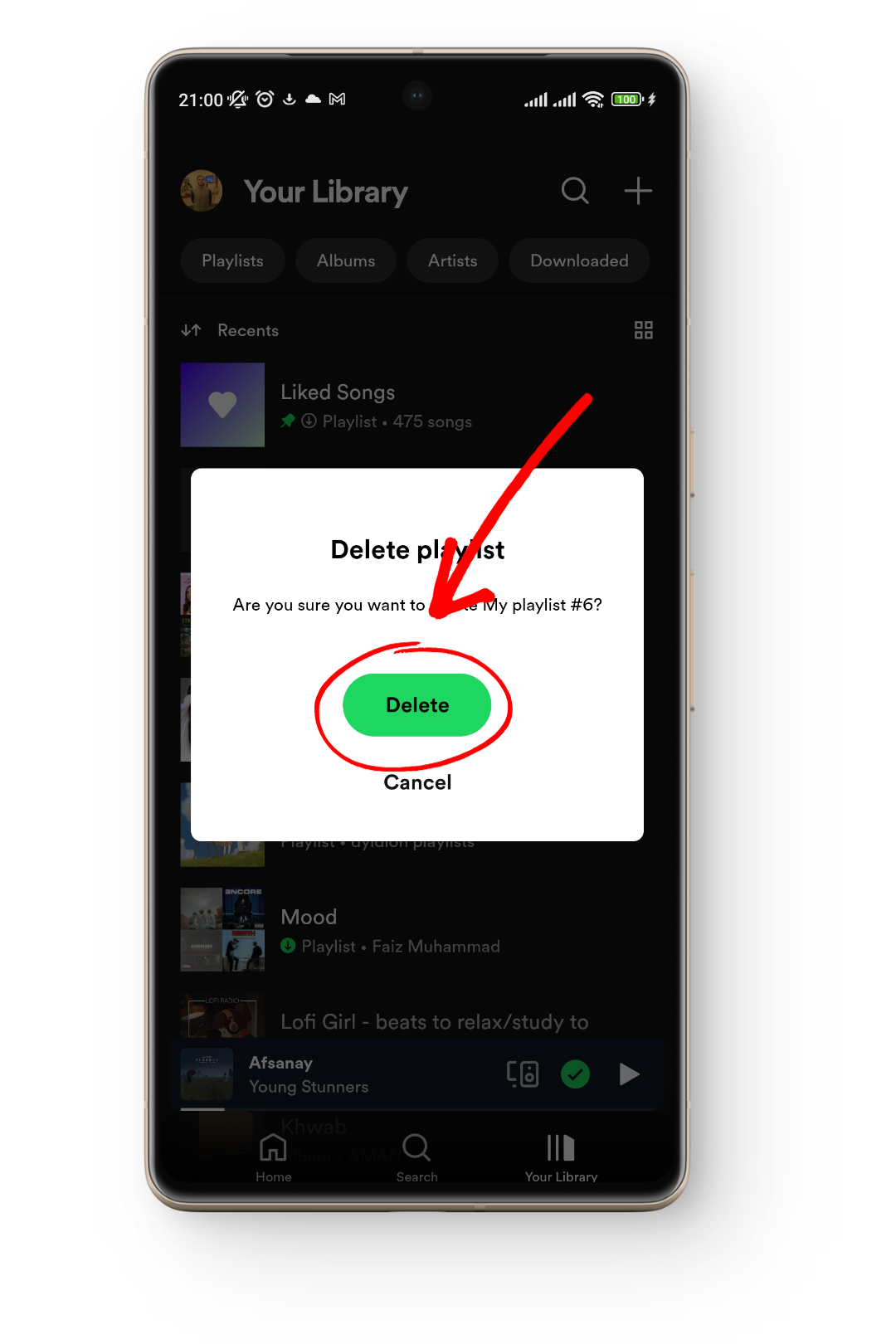 In the “Your Library” section, browse your curated music and find the playlist you wish to delete. Tap and hold it until some options pop up.