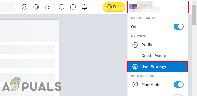 - Click on your username at the top right corner and select the User Settings option.