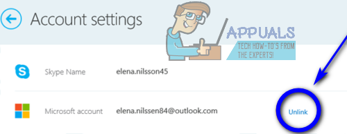 - Locate the listing for your Microsoft account and click on Unlink.