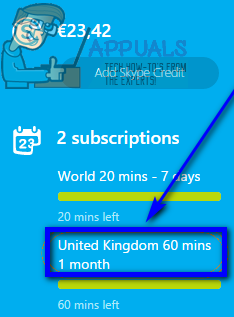 - All of your Skype subscriptions will be listed in the right pane (the blue bar on the right). Click on one of these subscriptions.