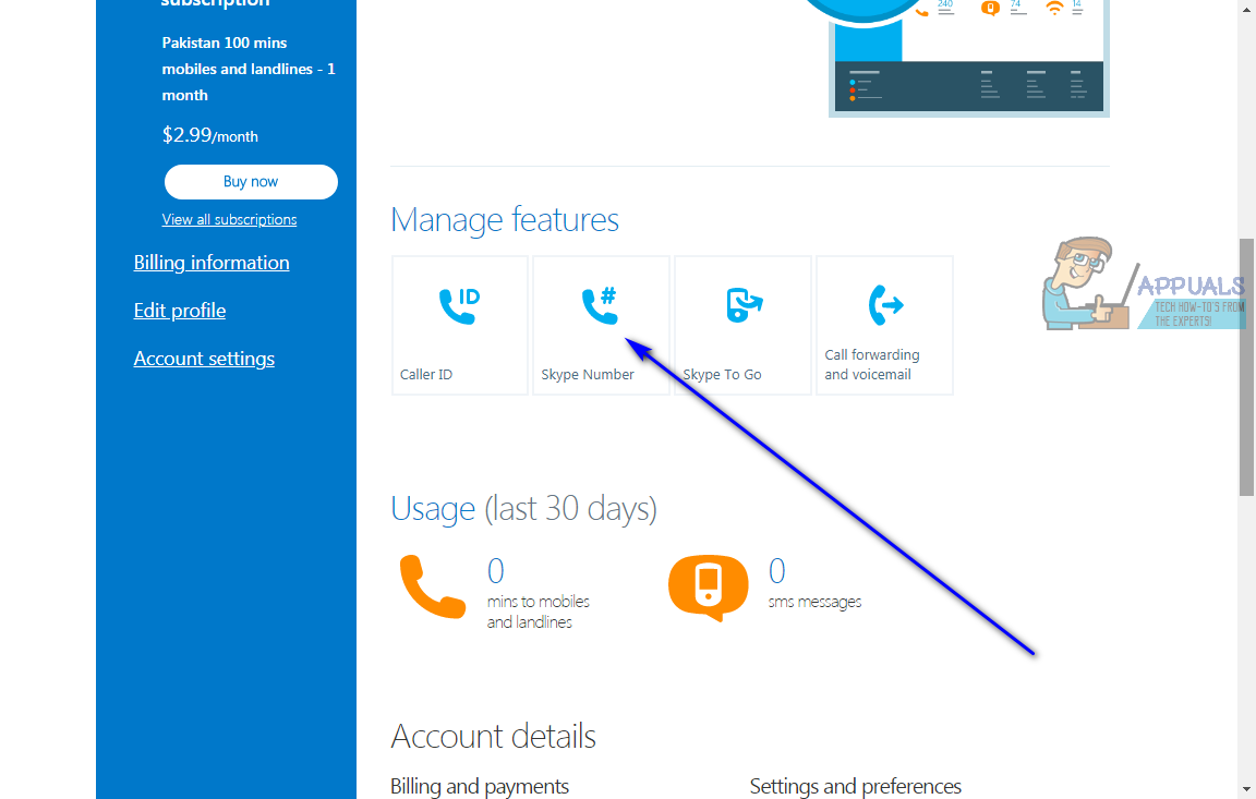 - If you paid for a Skype number, it is recommended that you cancel it before permanently deleting your Skype account. Scroll down to the Manage features section on the My Account page and click on Skype Number.