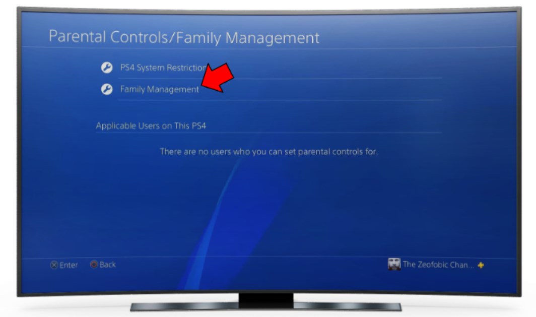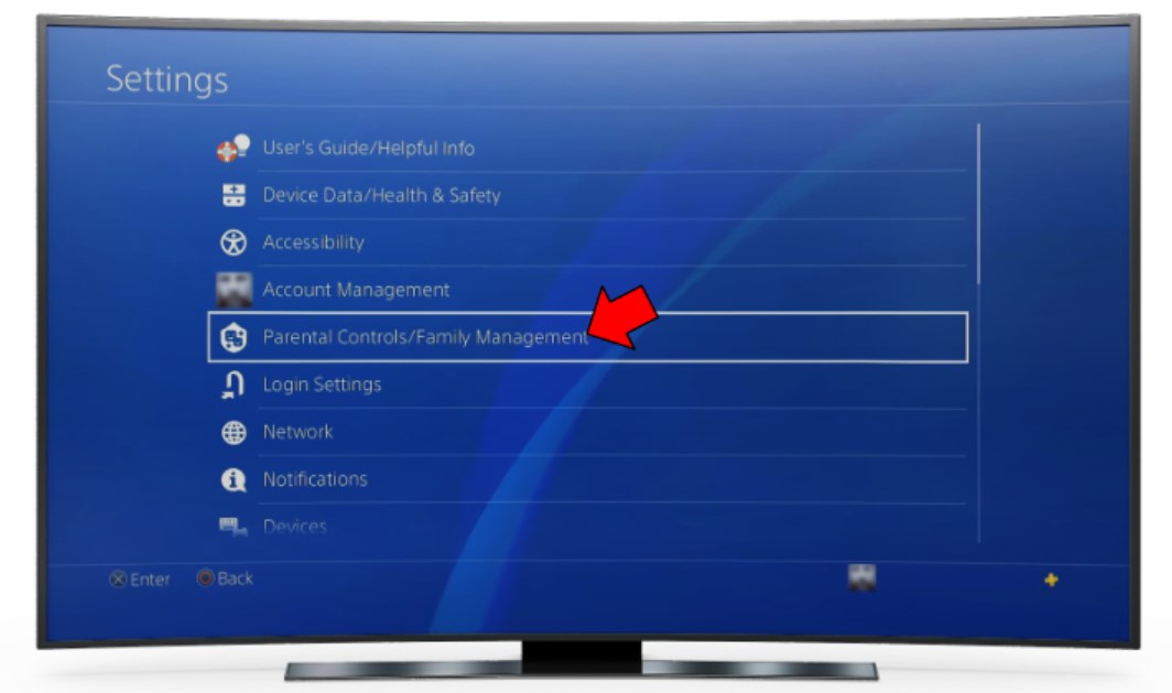 Inside this menu, scroll down and select “Parental Controls/Family Management.”
