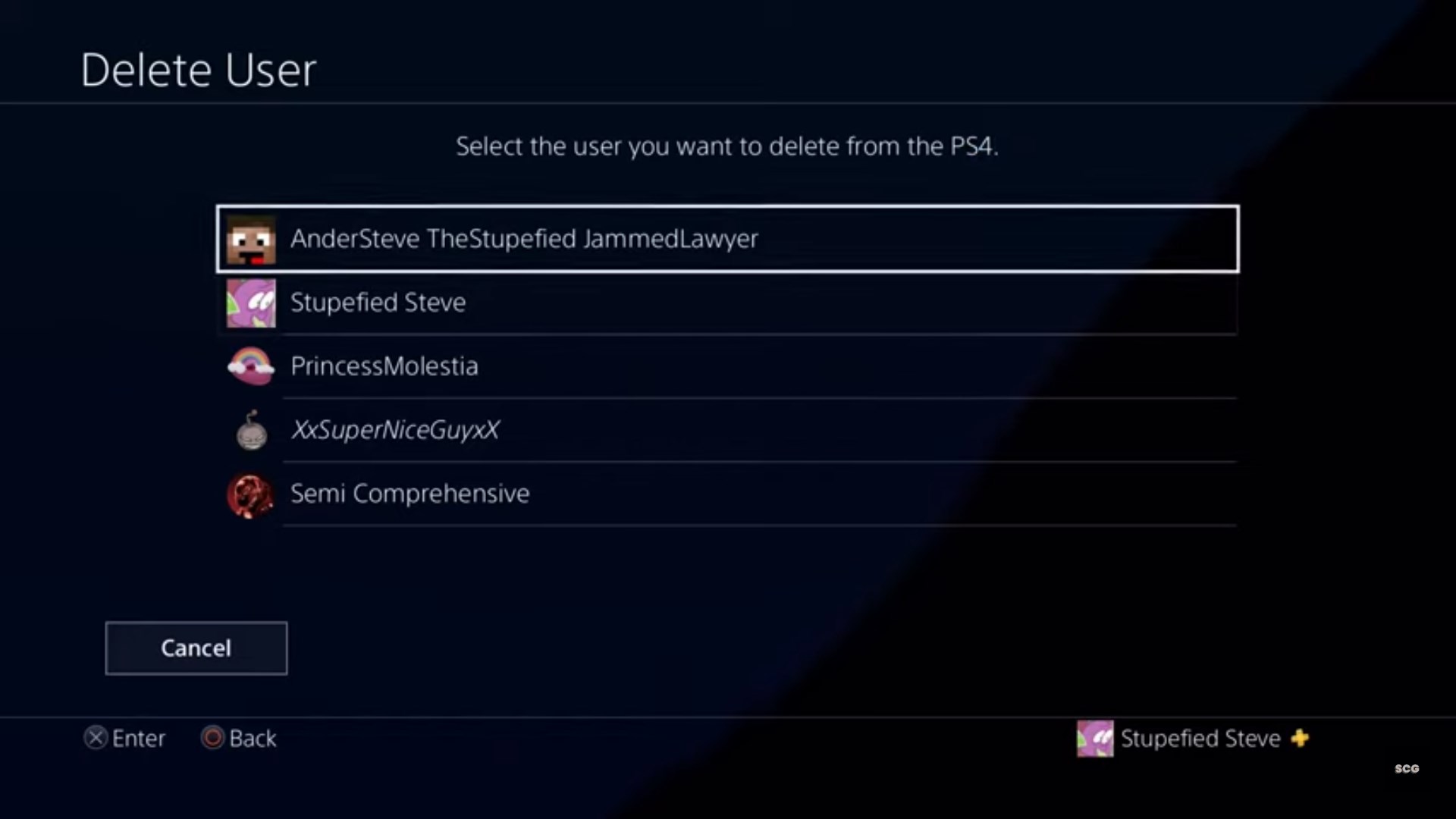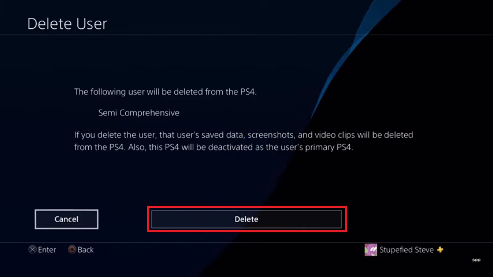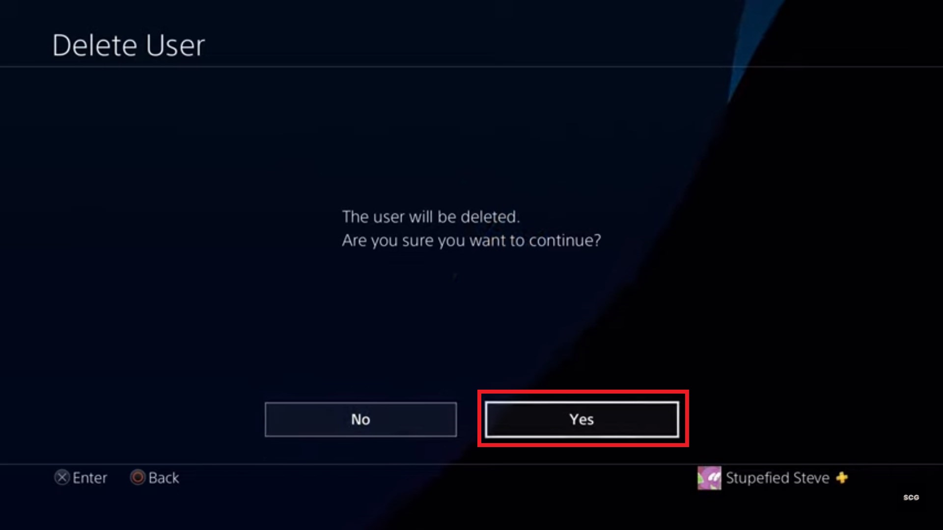 Press X on “Delete“, and then choose “Yes” when asked to confirm. This will remove the selected user from your PS4.
