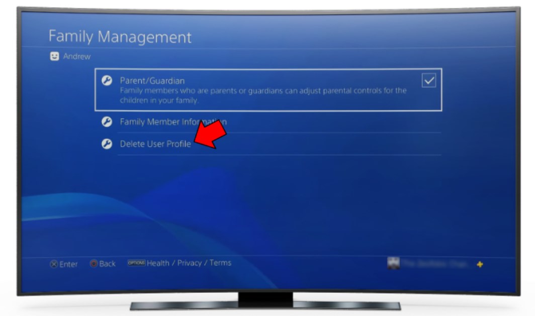 Within the family management area, locate and select “Delete User Profile” to remove this user from your PS4.