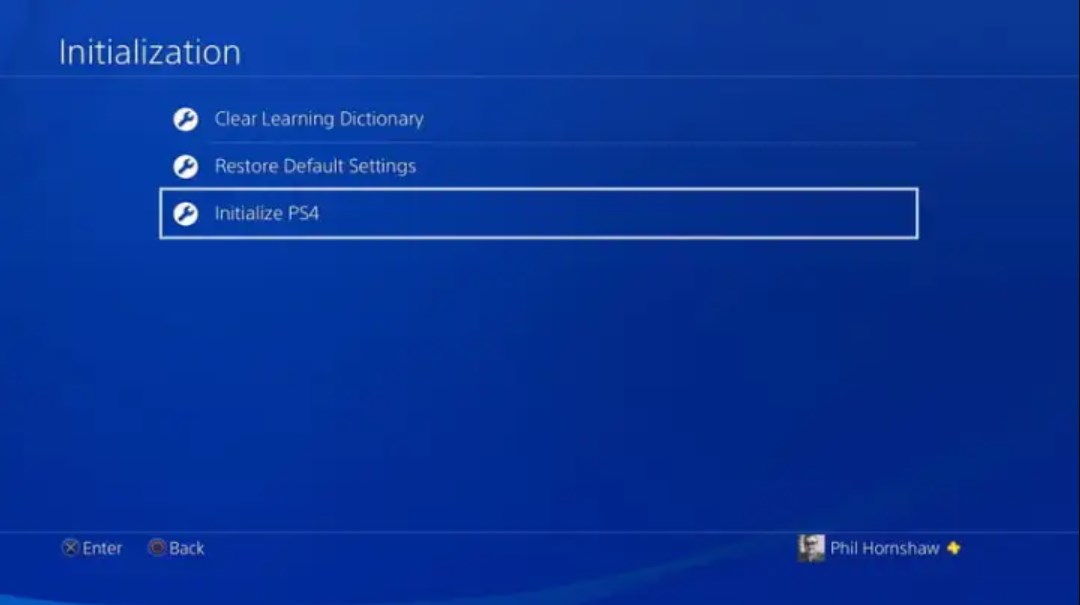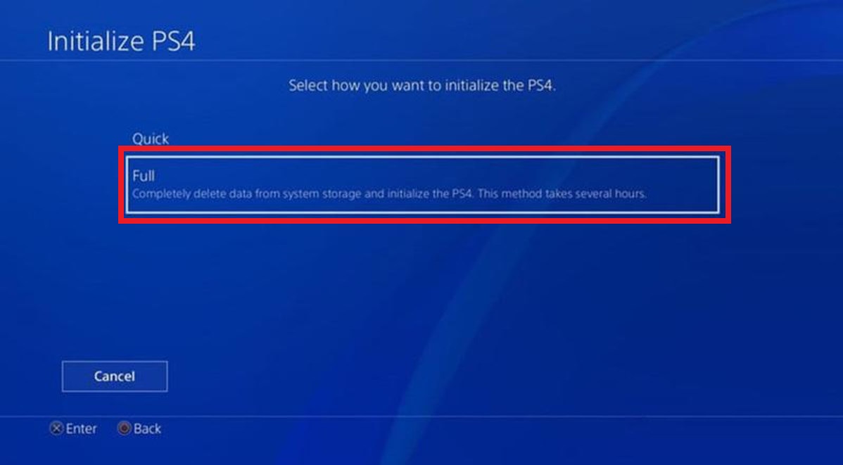 Select Initialize PS4 - Press X on “Full” to choose a full initialization.