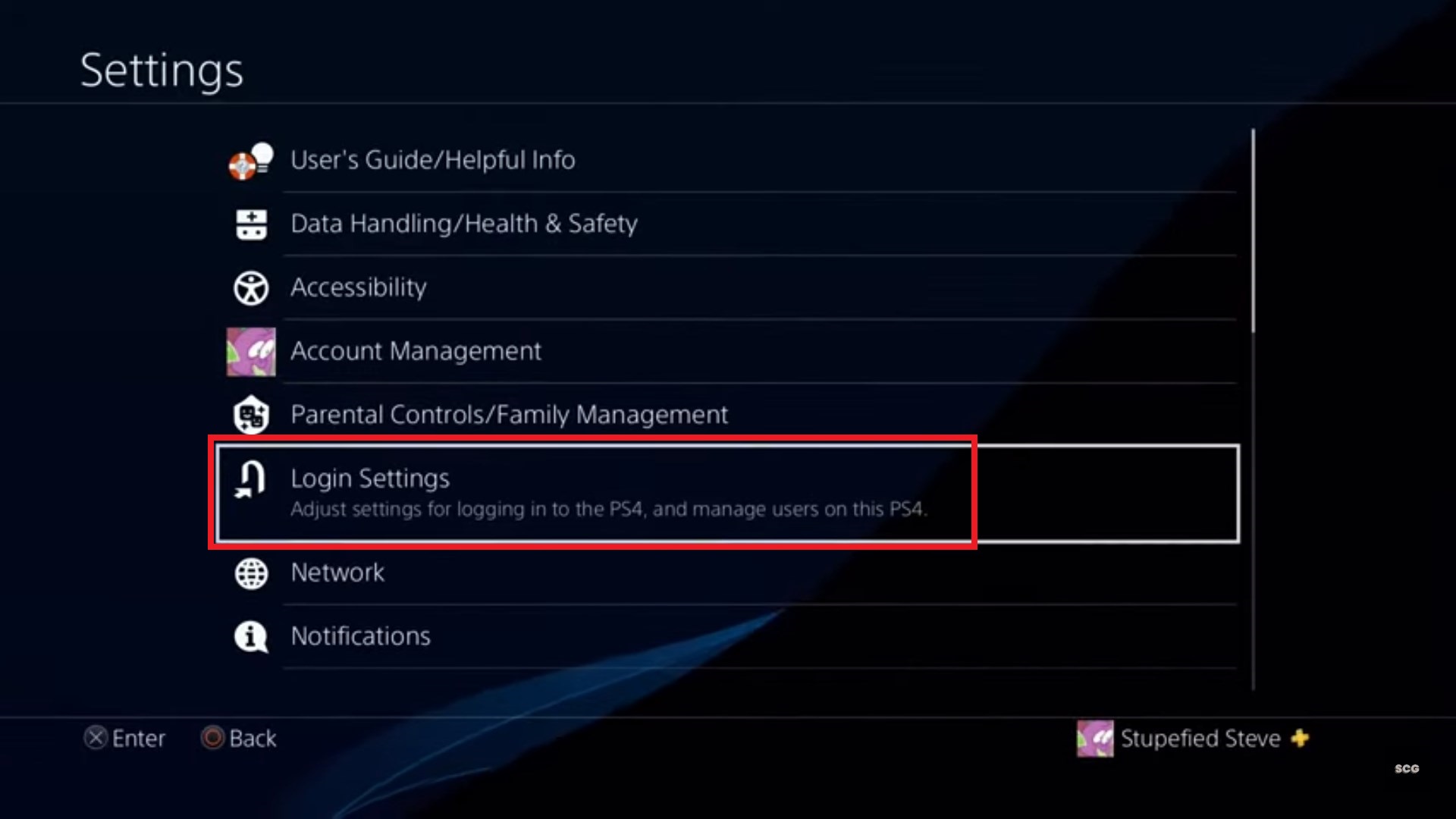 Scroll down in the menu until you see “Login Settings,” then select it.