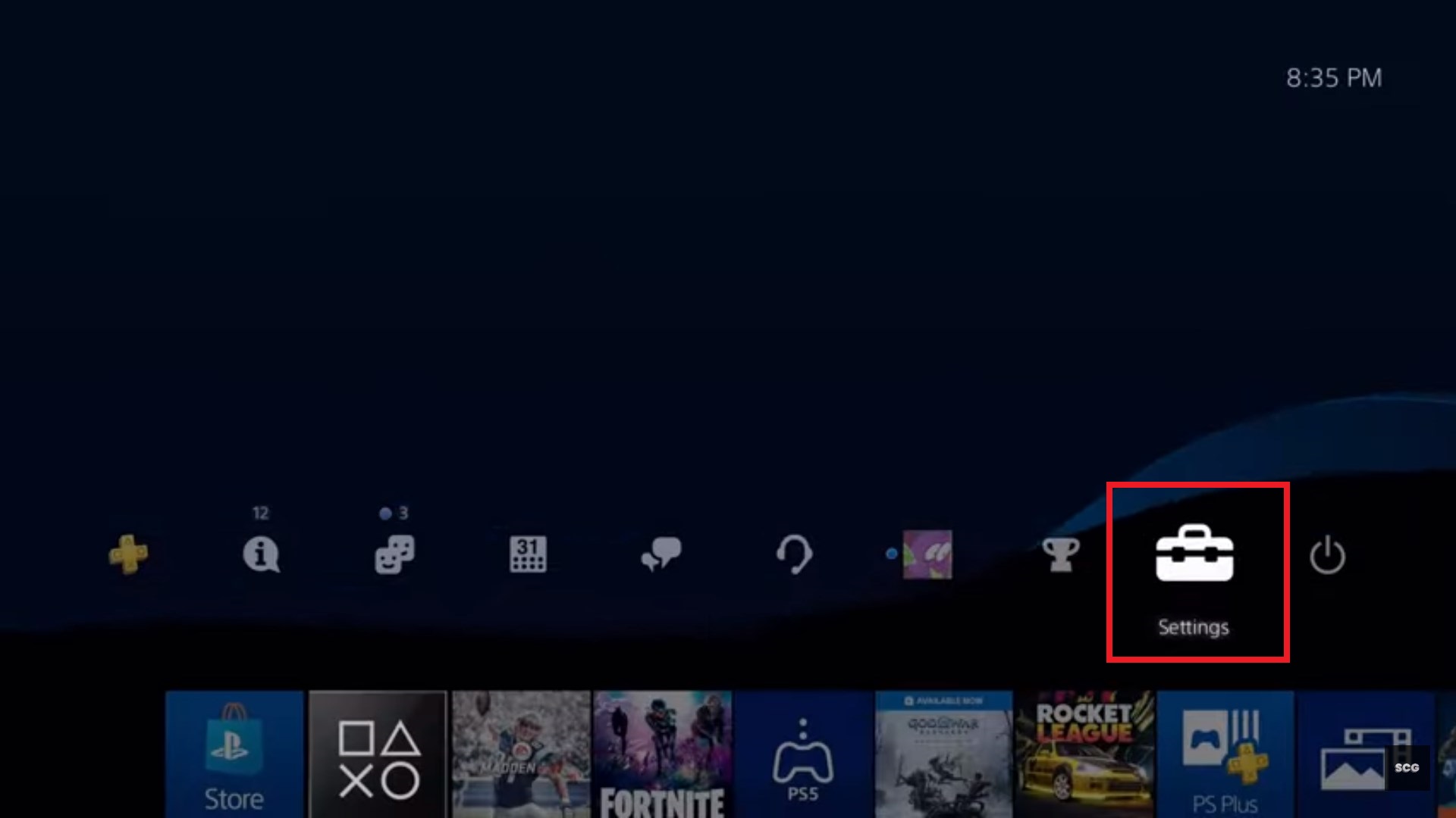 On your PS4’s home screen, navigate to and select the “Settings” option.