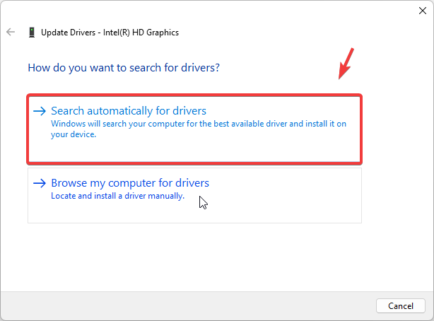 - In the next window, select Search automatically for drivers.