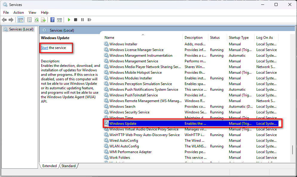 Another primary cause of this error is issues with Windows Update and Microsoft Store Services. If essential services such as Windows Update or the Microsoft Store service aren’t running, it can prevent app installations and updates, triggering the “volume offline” error. To fix this issue, verify that these services are running as intended.