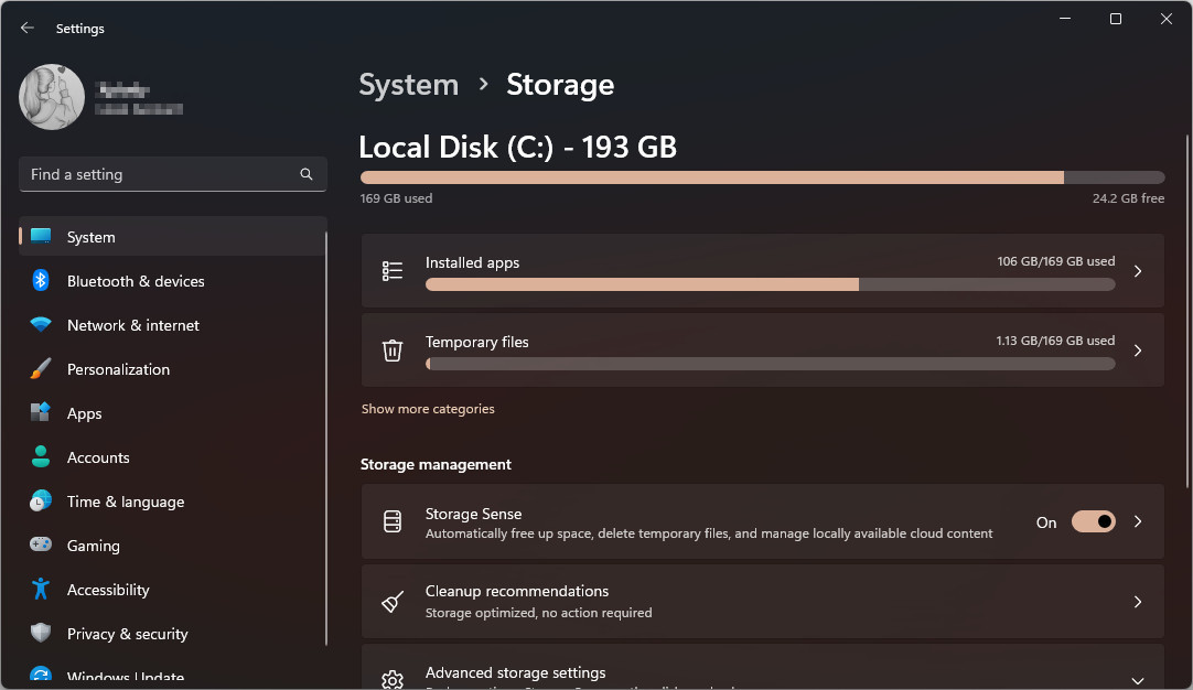 - Open Settings and navigate to System, then select Storage.