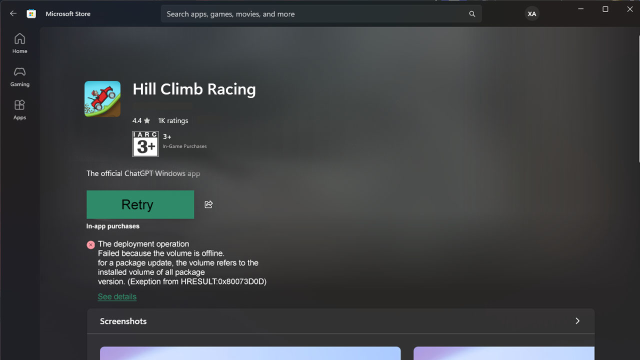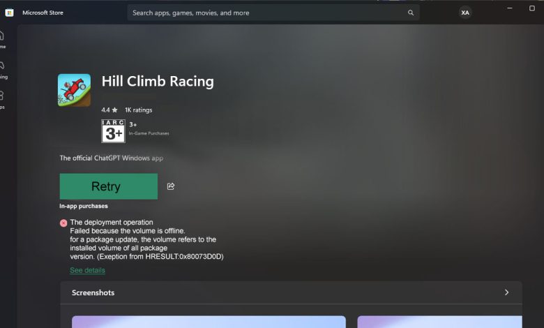 The error message “The deployment operation failed because the volume is offline” (HRESULT:0x80073D0D) appears when you try to install or update apps. This issue usually occurs when Windows detects the target drive as unavailable due to factors such as the drive being offline, a faulty cable, an improper connection, or issues with permissions or disk space.