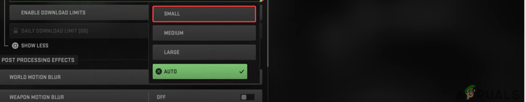 - If you prefer to keep the feature enabled, click Show More and set the texture cache size to Medium or Low, also setting the Daily Download Limit to 1.0.
