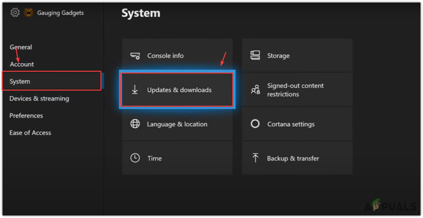 - Select Updates and Downloads from the right panel.