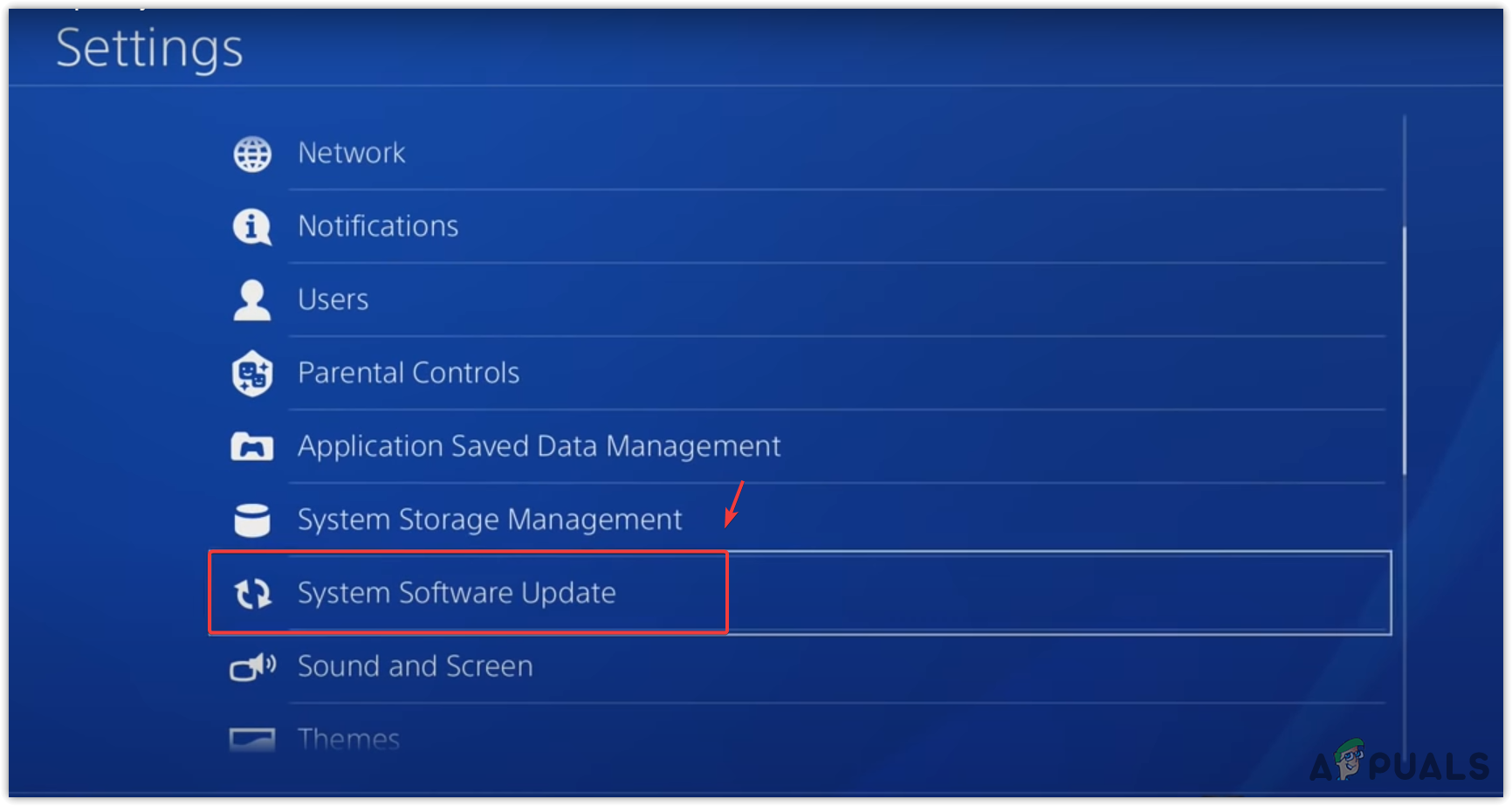 - Go to System Software Update.