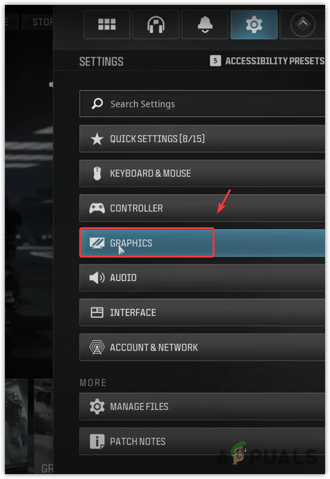 - Navigate to Settings, then select Graphics.