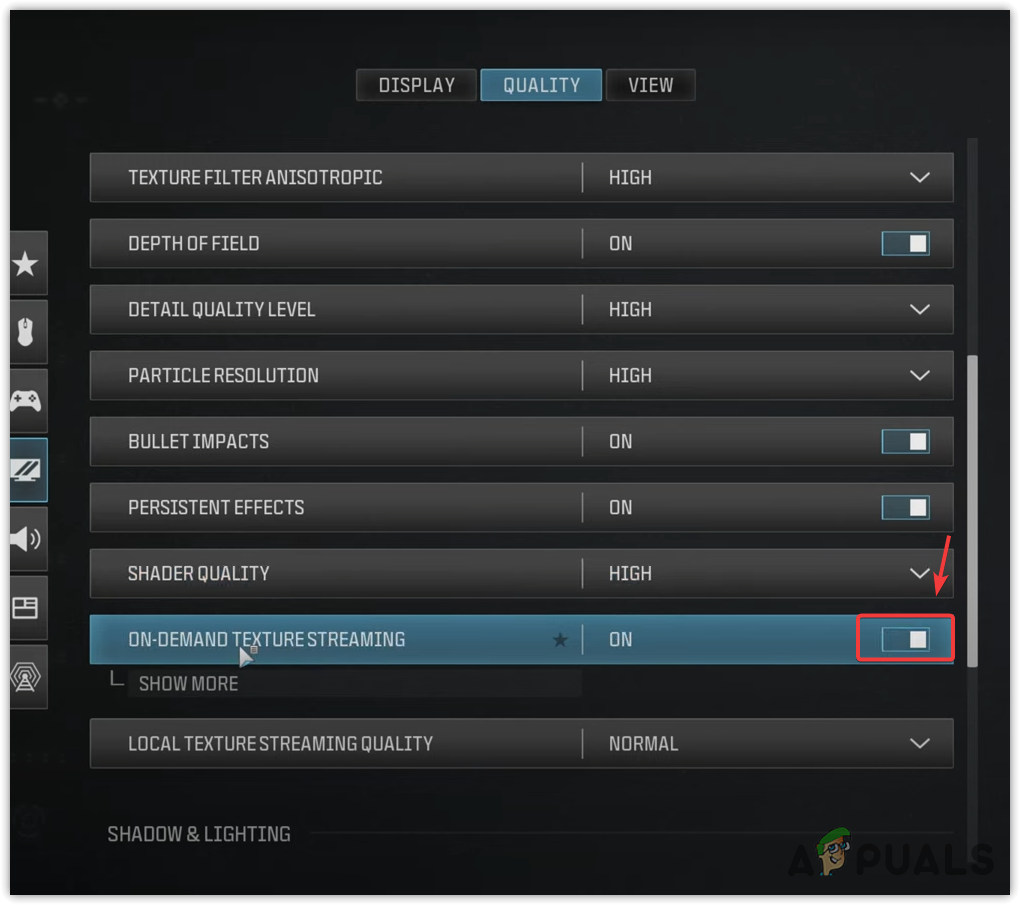 Disabling this feature could slightly degrade your game’s visual appearance. Nevertheless, if game performance is more important to you than texture quality and you wish to resolve the error, the trade-off will be worthwhile. Follow these steps: