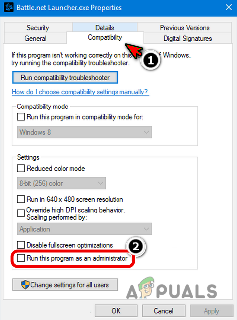 Open File Location of the Battle.net Client - Now select Open File Location and enable Run This Program as Administrator for the following files: